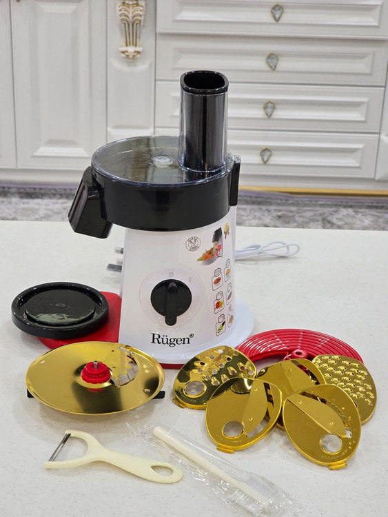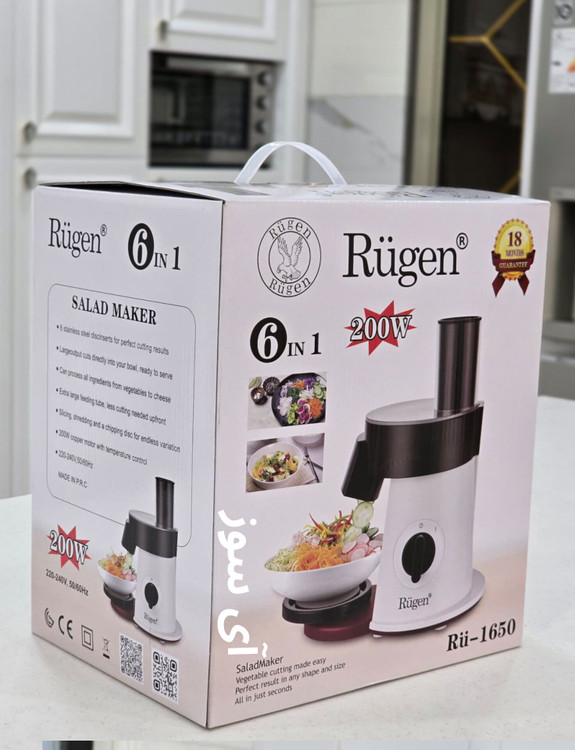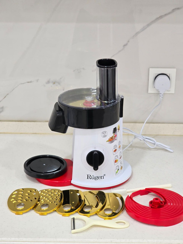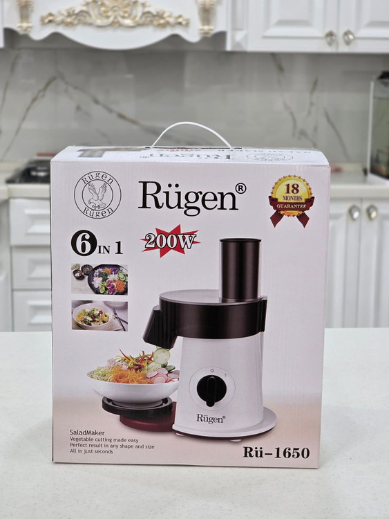 سالاد ساز 6 کاره روگن مدل RU-1650 | آشپزخانه حرفهای در دستان شما لذت آشپزی سریع و خلاقانه را با سالاد ساز 6 کاره روگن تجربه کنید! این دستگاه با 6 تیغه تیتانیومی ضدزنگ و کاربری آسان، تنها وسیلهای است که برای خرد کردن، خلال کردن و برش زنی حرفهای تمام میوهها و سبزیجات نیاز دارید. ویژگیهای کلیدی محصول (بخش اول)