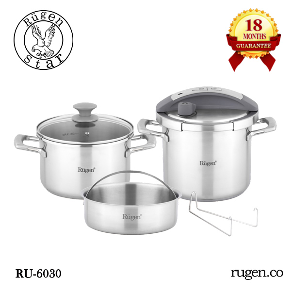 زودپز دوقلو روگن مدل RU-6030 – استیل، 5+7 لیتر